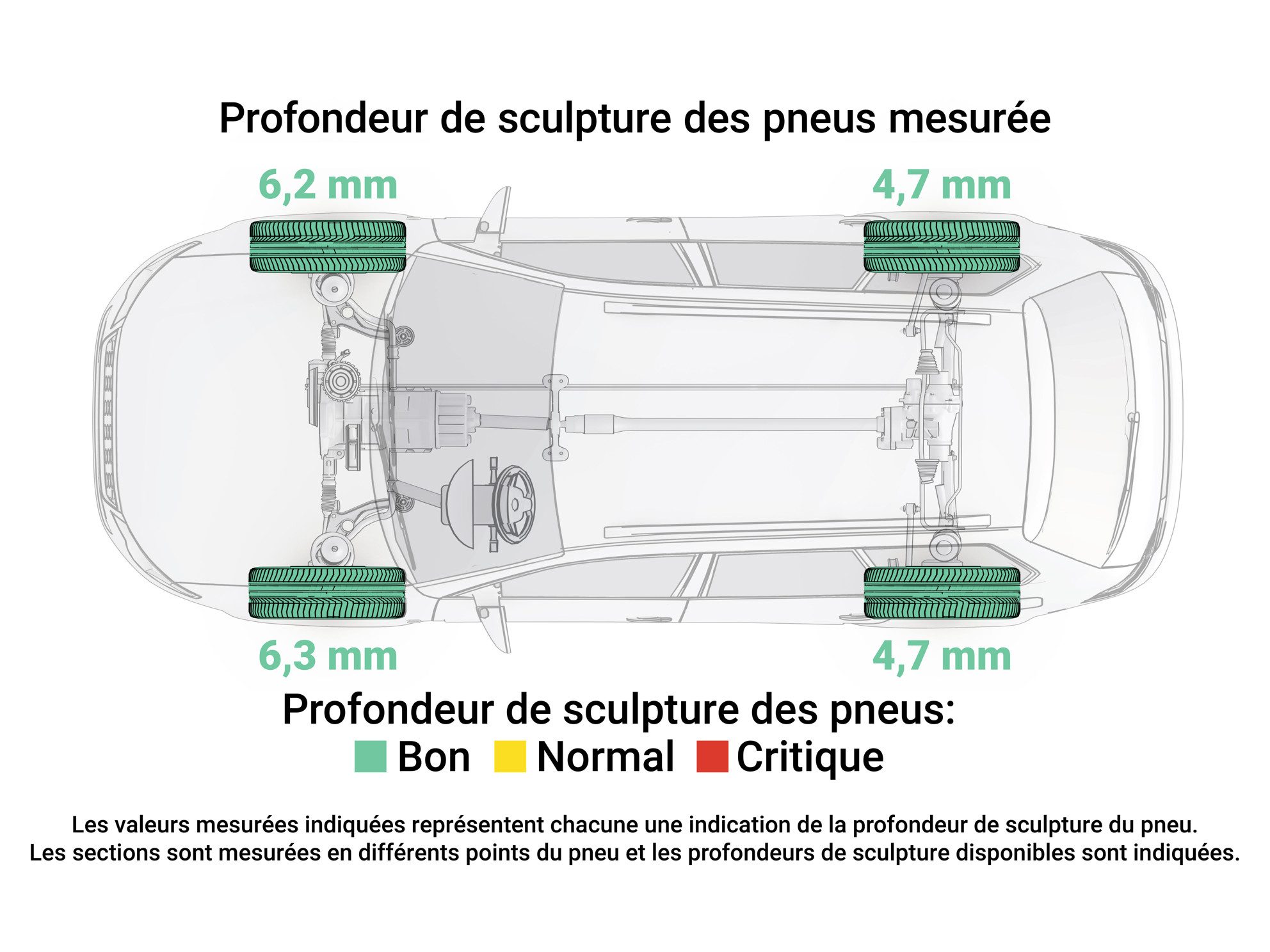 Nous partageons avec vous tous les détails importants de nos véhicules - toutes les caractéristiques, les imperfections, la profondeur de chaque pneu & même une vue détaillée du sous bassement